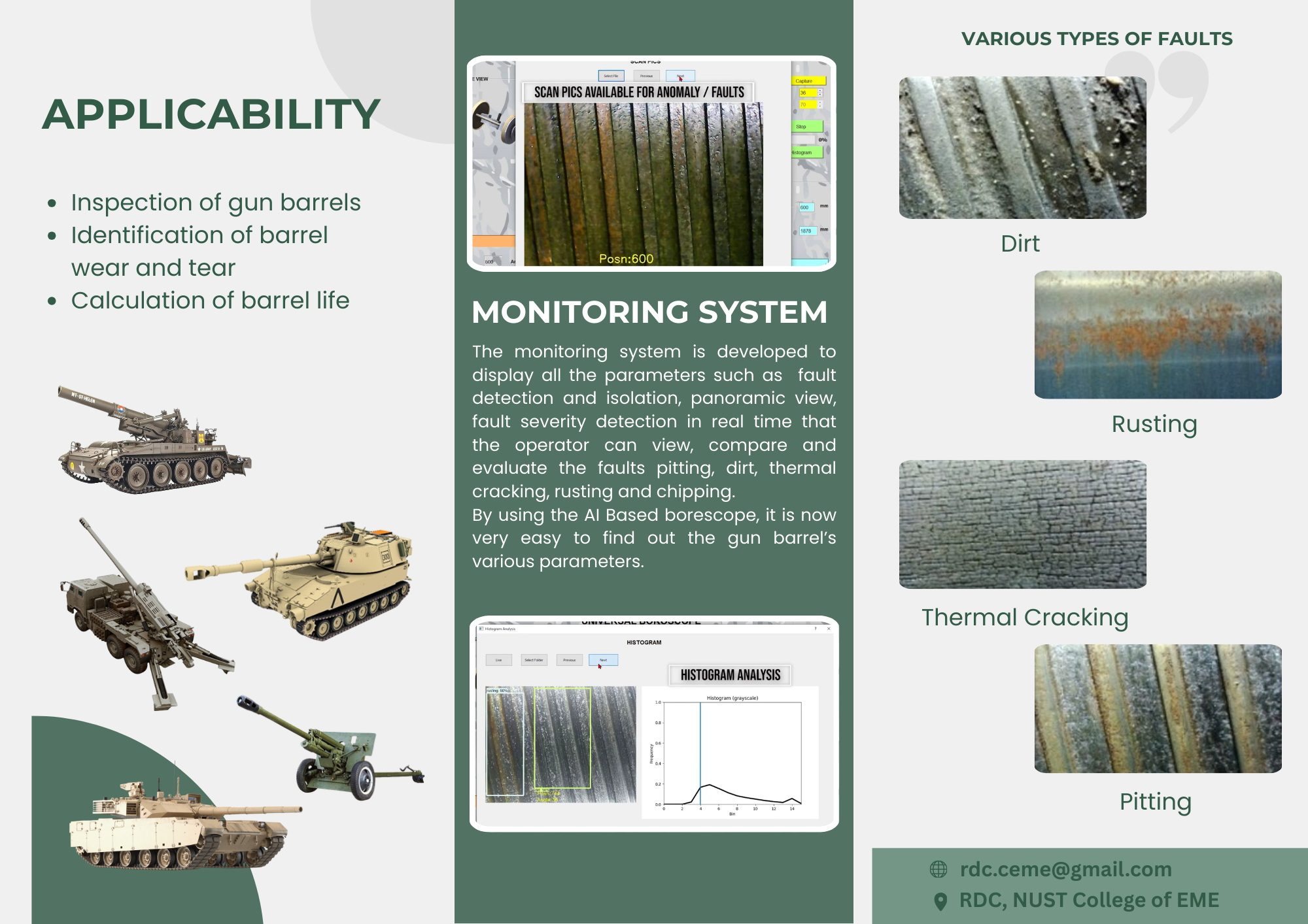 Applicable on Inspection of gun barrels, Identification of barrel wear and tear, Calculation of barrel life use for correction of Various Types of Faults, Dirt, Rusting, Thermal Cracking, Pitting. Global Supply Chain, navigating complex logistics to ensure timely & secure delivery.
