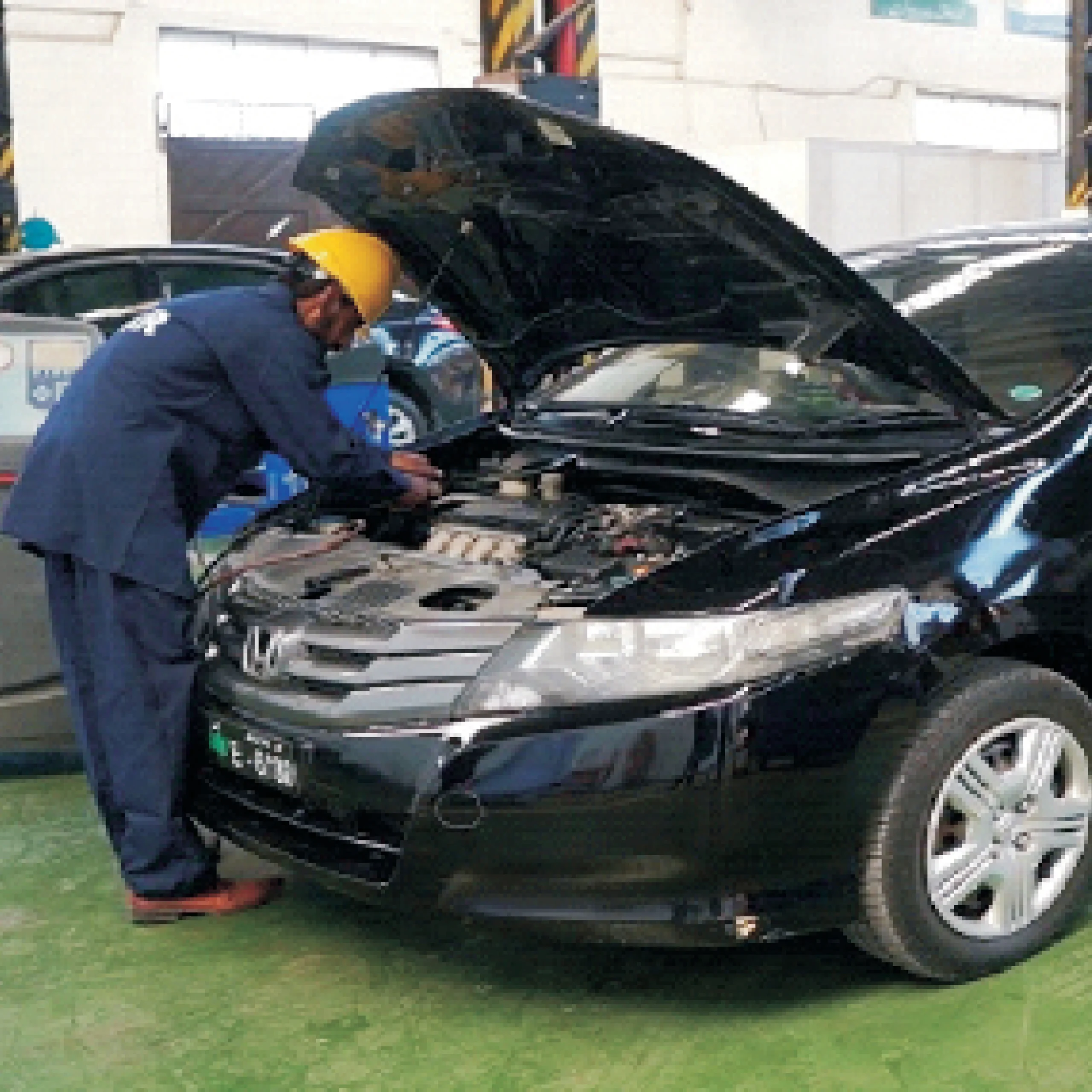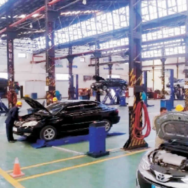 Dedicated vehicle service bays & hydraulic lifts Modern diagnostic & scanning tools Tyre maintenance & balancing systems Express maintenance bay for urgent repairs