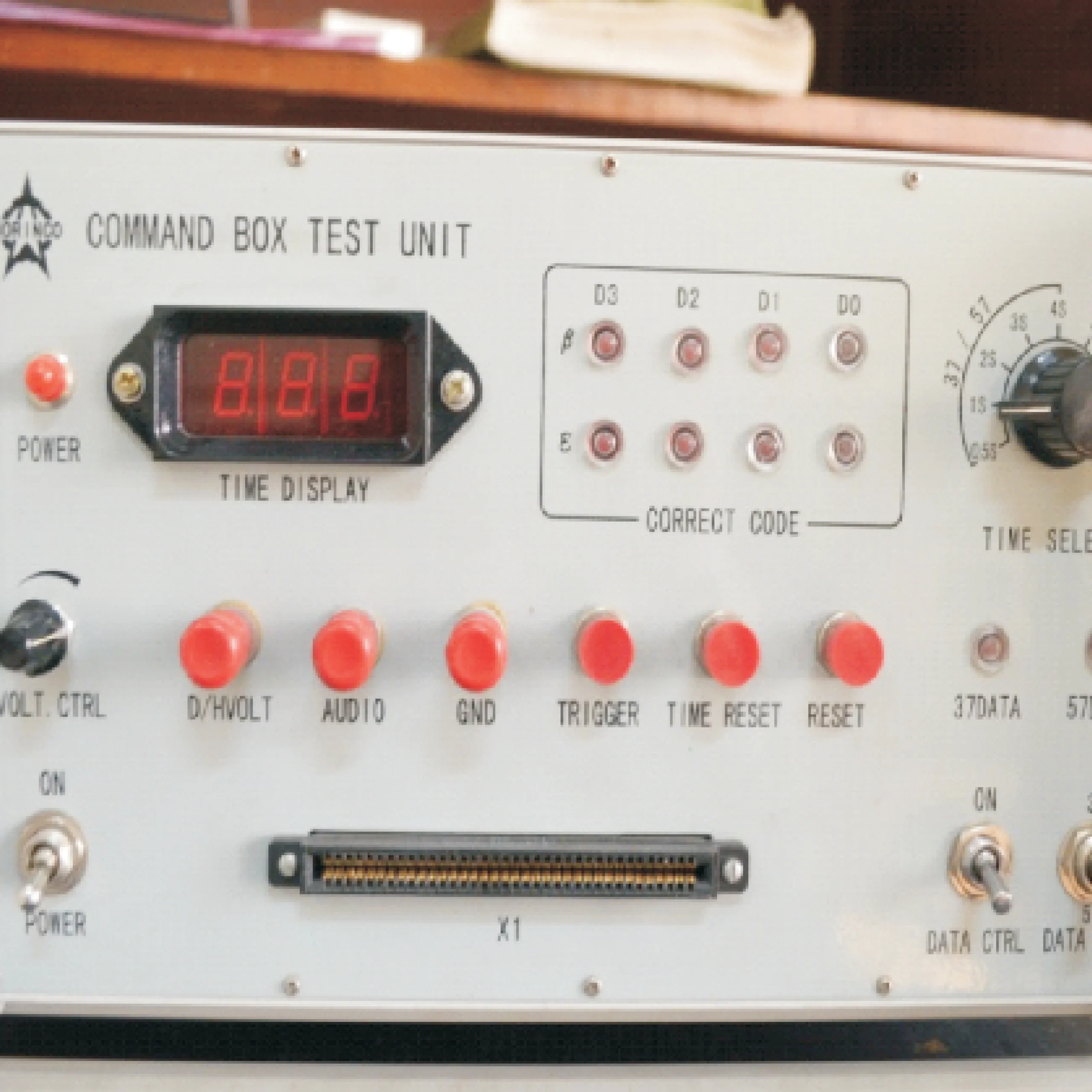 The Command Box Test Unit is used to carry out functional testing and validation of command systems involved in target tracking and engagement. This unit enables verification of trigger timing accuracy, checks the correctness of target flight height and slant distance indications, and ensures reliable operation of the warning system. The system can simulate and indicate slant ranges up to 30 kilometres and target heights up to 10 kilometres. This test unit plays a vital role in the maintenance and operational readiness of fire control and target acquisition systems.