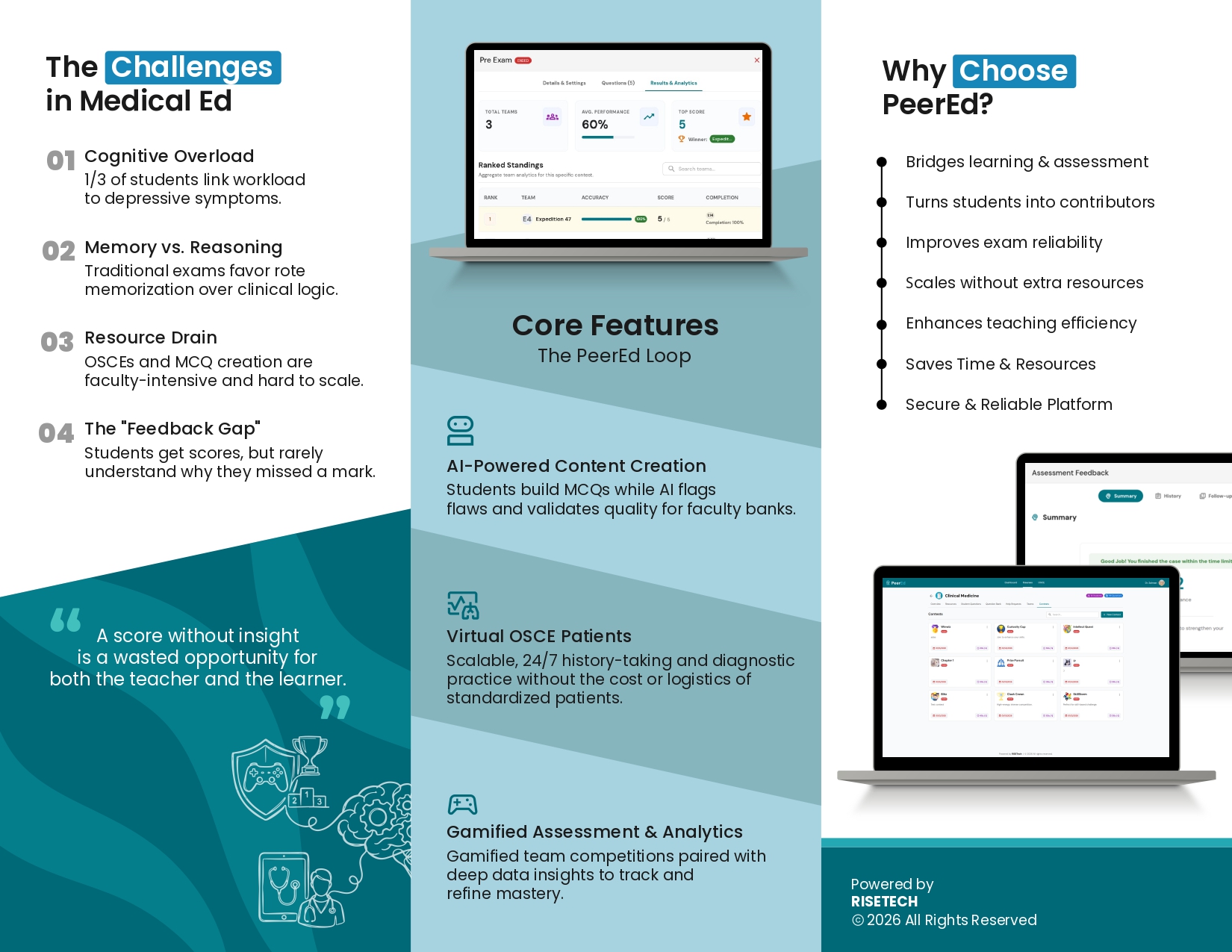 Transforming Medical Education Through AI & Peer Learning. Learn by Thinking. Improve by Teaching A smart digital platform for modern medical training with AI-powered assessments, Virtual OSCE practice, Peer-driven learning and Data-driven insights.